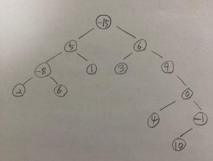 루트노드인 -15의 가중치를 가진 노드부터 시작해서