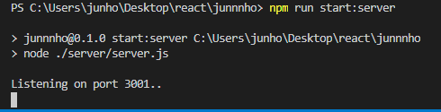 React는 기본적으로 3000번 포트를 사용하도록 설정되어 있기 때문에,