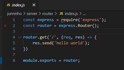 서버 사용을 위한 폴더내에 라우더 폴더/index.js 를 생성하고, 라우팅을 위한 server.js를 생성한다.
