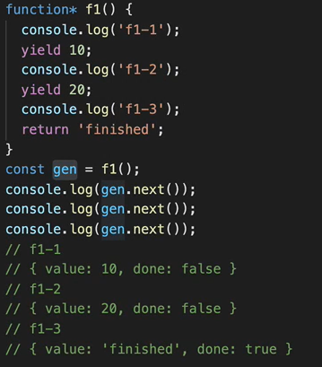 console.log(gen[Symbol.iterator]() === gen); // true